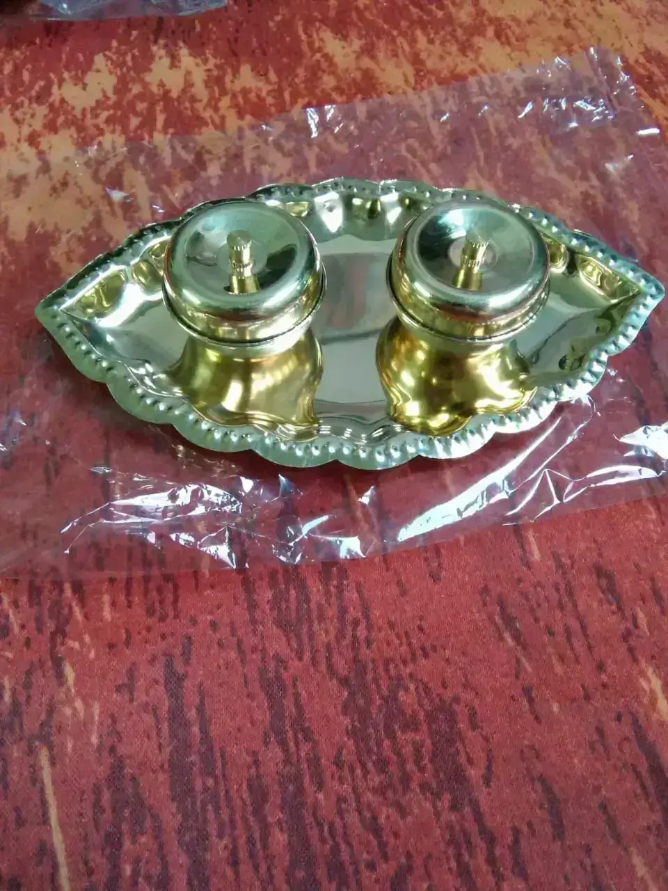 | Product Type | Brass Leaf Design Haldi Kumkum 2 Dibbi Gift Set |