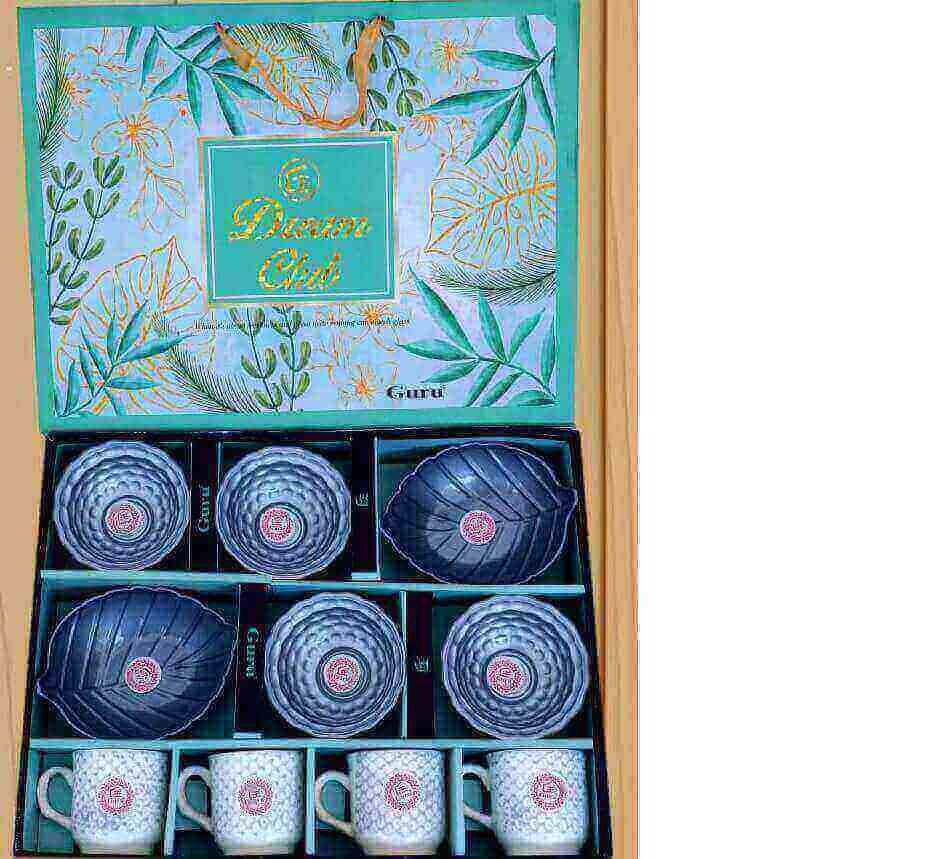 Dream Club (4+4+2) 10 Pcs Ceramic Pudding Bowl & Coffee Mug Exclusive Gift Set for Home, Festivals/Corporate/Functions/Wedding/Housewarming/Return Gift and home use for all Occasions. Multicolor Dream Club (4+4+2) 10 Pcs Ceramic Pudding Bowl & Coffee Mug Exclusive Gift Set for Home for Customized Gifting Purpose Navratri, Dussehra, Diwali Festivals, Corporate, Function, Wedding and for all Occasions, for Home Purpose. Dream Club 10 Pcs Ceramic 4 Pcs Pudding Bowl, 2 Leaf Bowl & 4 Coffee Mug Set available in Silver & Deco Colors.