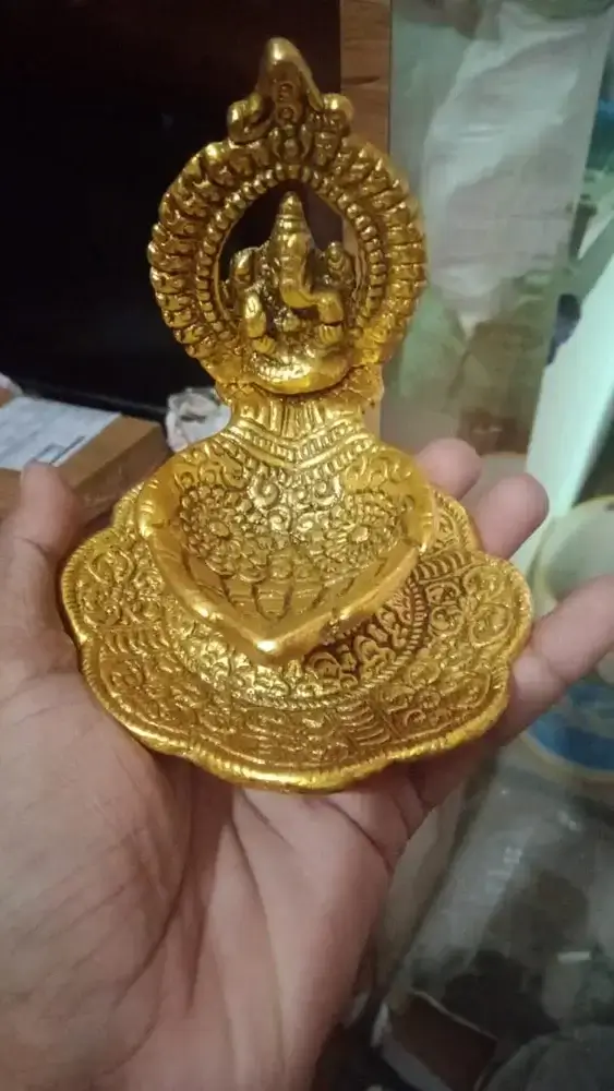 Ganesh Idol Metal Welcome Diya 1Pc Gift Set for All Occasions for Home, Festivals/Corporate/Functions/Wedding/Housewarming/Return Gift and home use for all Occasions. Golden Color Ganesh Idol Metal Welcome Diya 1Pc Gift Set for All Occasions with Customized Gifting Purpose Navratri, Dussehra, Diwali Festivals, Corporate, Functions, Wedding and for all Occasions, for Home, Gifting, Office, Business Pooja Room purpose available with Good Quality.