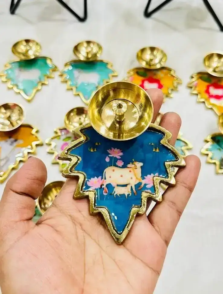 Pichwai Pure Brass Multi Design 4 Inch Leaf Diya 1Pc Gift Set for All Occasions for Home use, Festivals/Corporate/Functions/Wedding/Housewarming Return Gifts for all Occasions. Pichwai Pure Brass Multi Design 4 Inch Leaf Diya 1Pc Gift Set for All Occasions with Customized Gifting Purpose Navratri, Dussehra, Diwali Festivals, Corporate, Functions, Wedding and for all Occasions, for Home, Office, Business Gift Serving purpose available with Good Quality and available in Multidesigns.