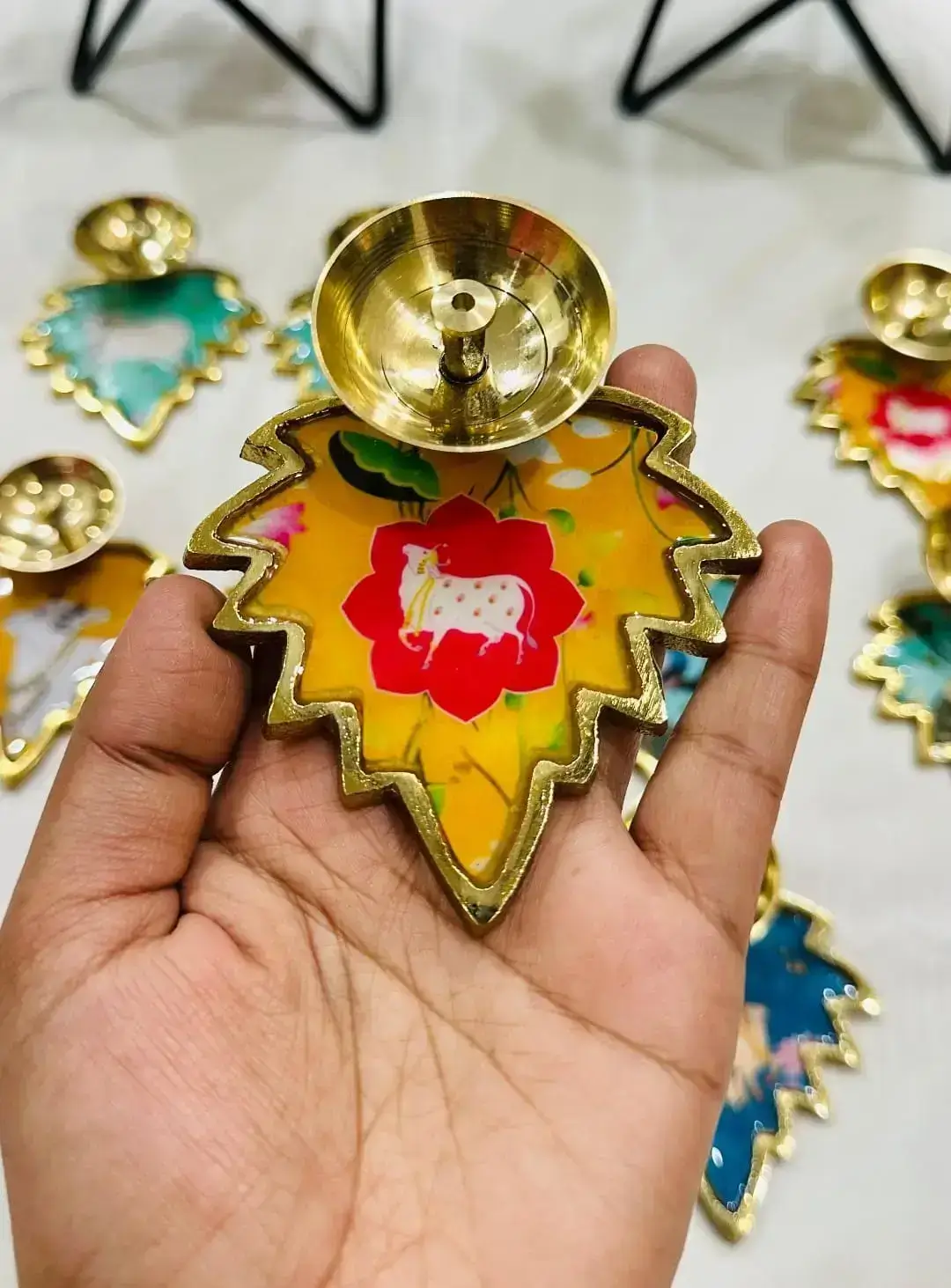 Tags: Bras Leaf Diya, Brass Leaf Oil Diya, Pichwai Leaf Diya